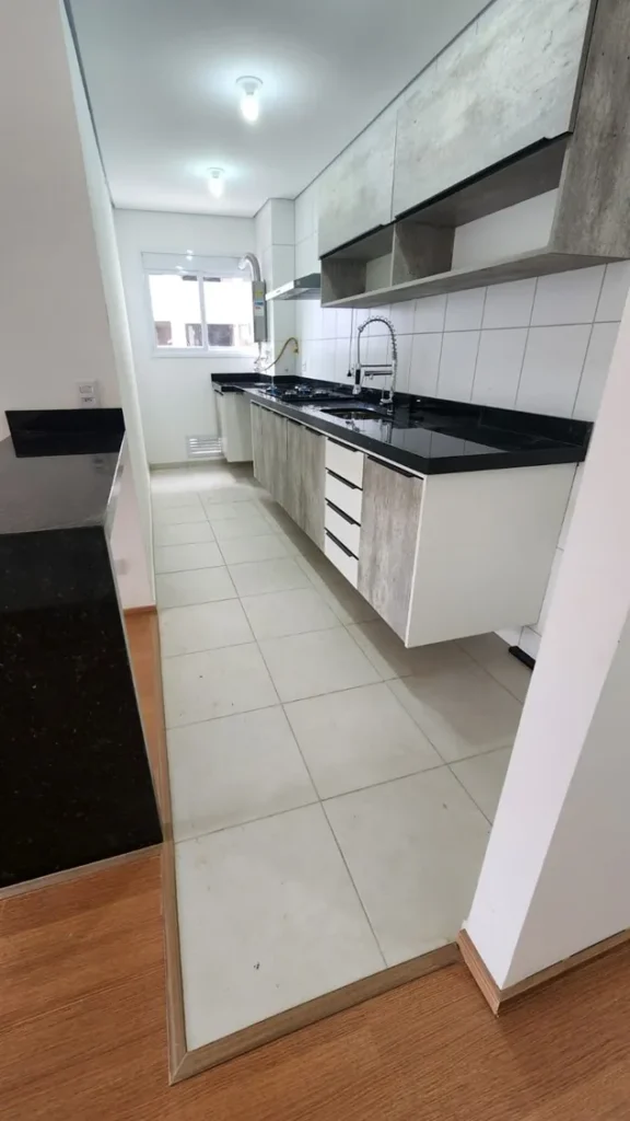 O desafio era transformar cada metro quadrado em um ambiente agradável, moderno e prático para o dia a dia. Começamos pelo projeto de layout, repensando os ambientes para aproveitar melhor a área útil. Derrubamos uma parede para integrar sala e cozinha, criando amplitude e circulação.